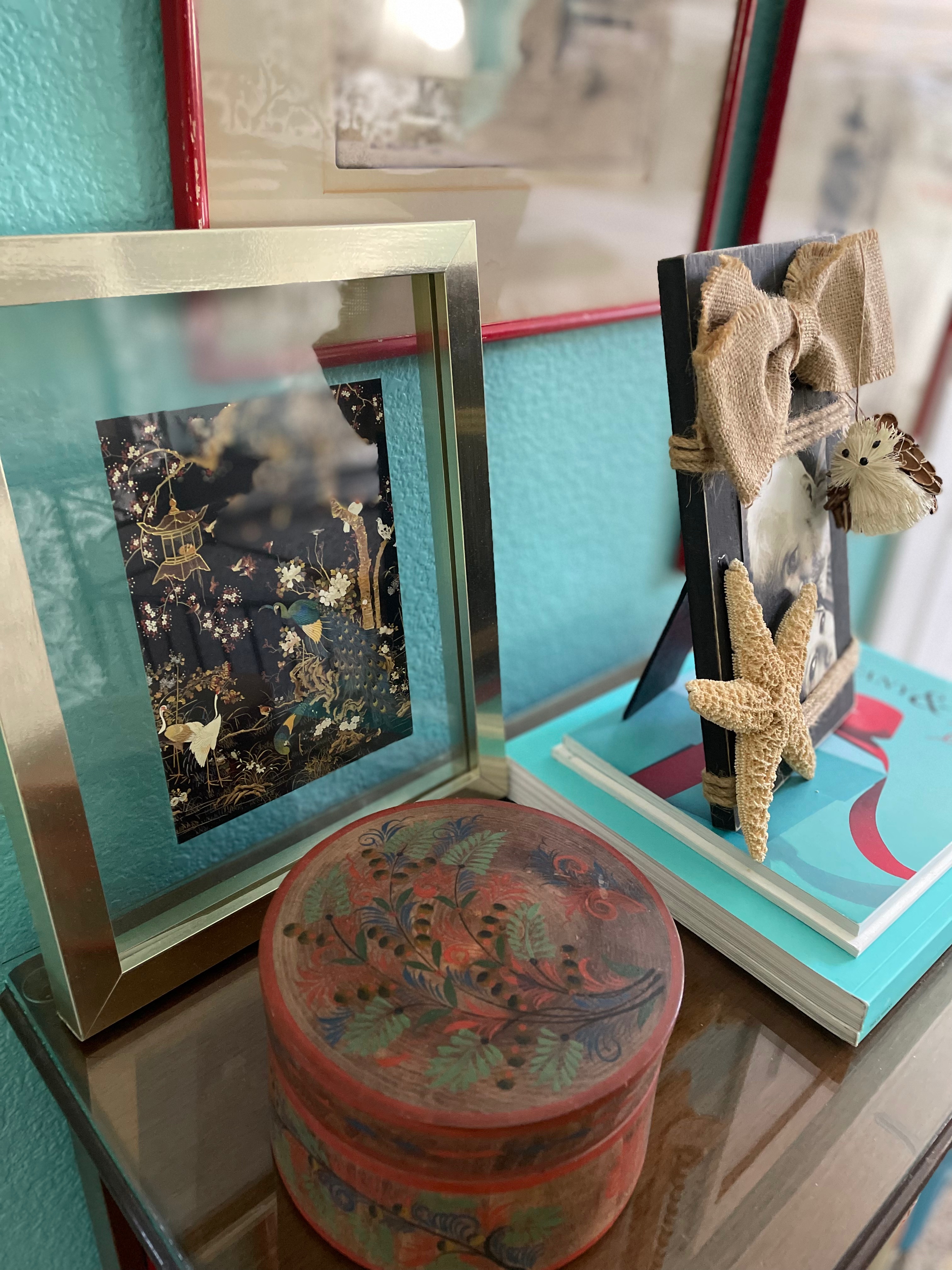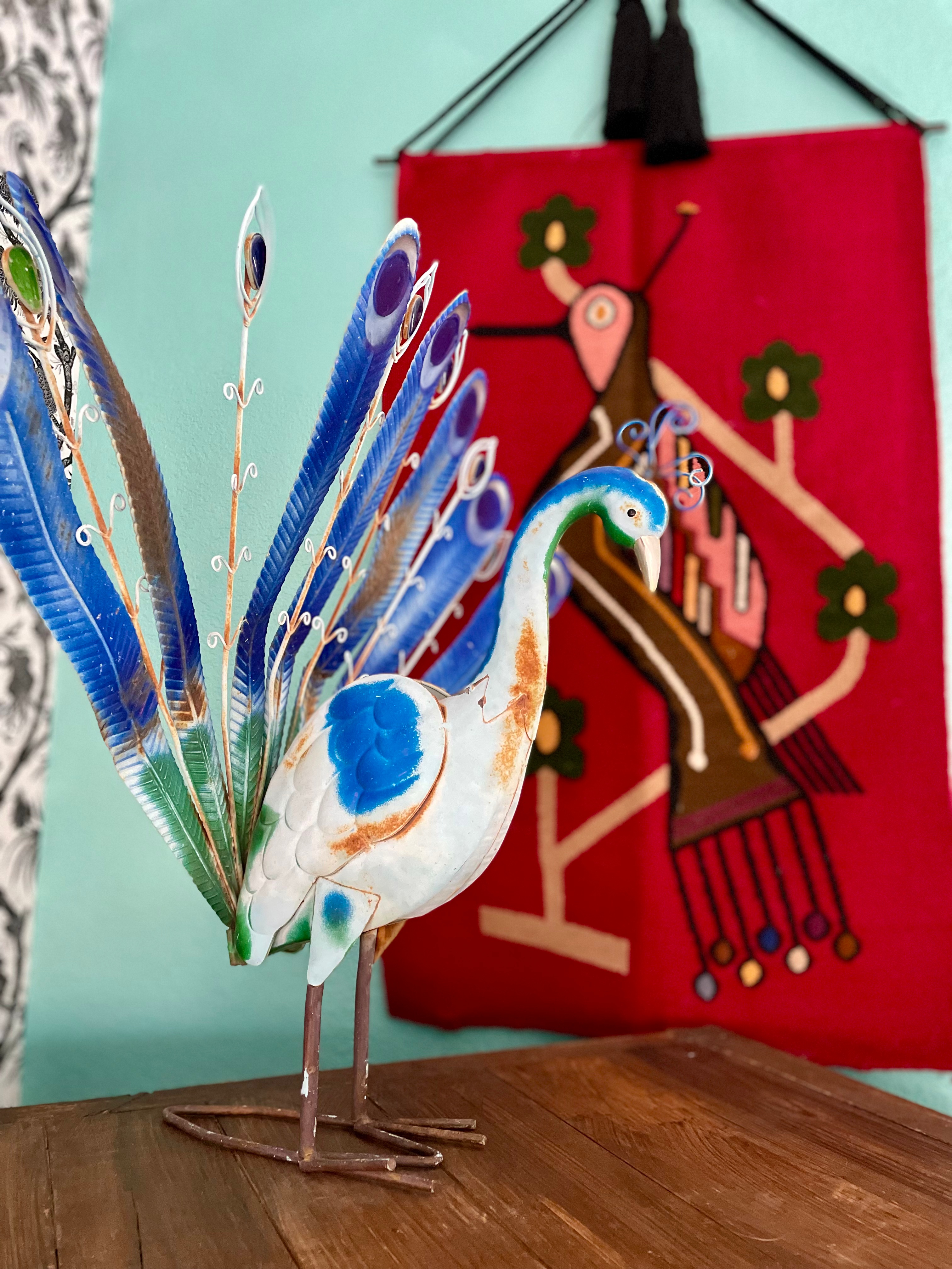 The peacock bedroom was the first bedroom I decorated in this house. My boudoir was next, then the primary bedroom, and finally the second guest room — aka the zebra bedroom — shortly thereafter. (To be revealed in future blogs!)