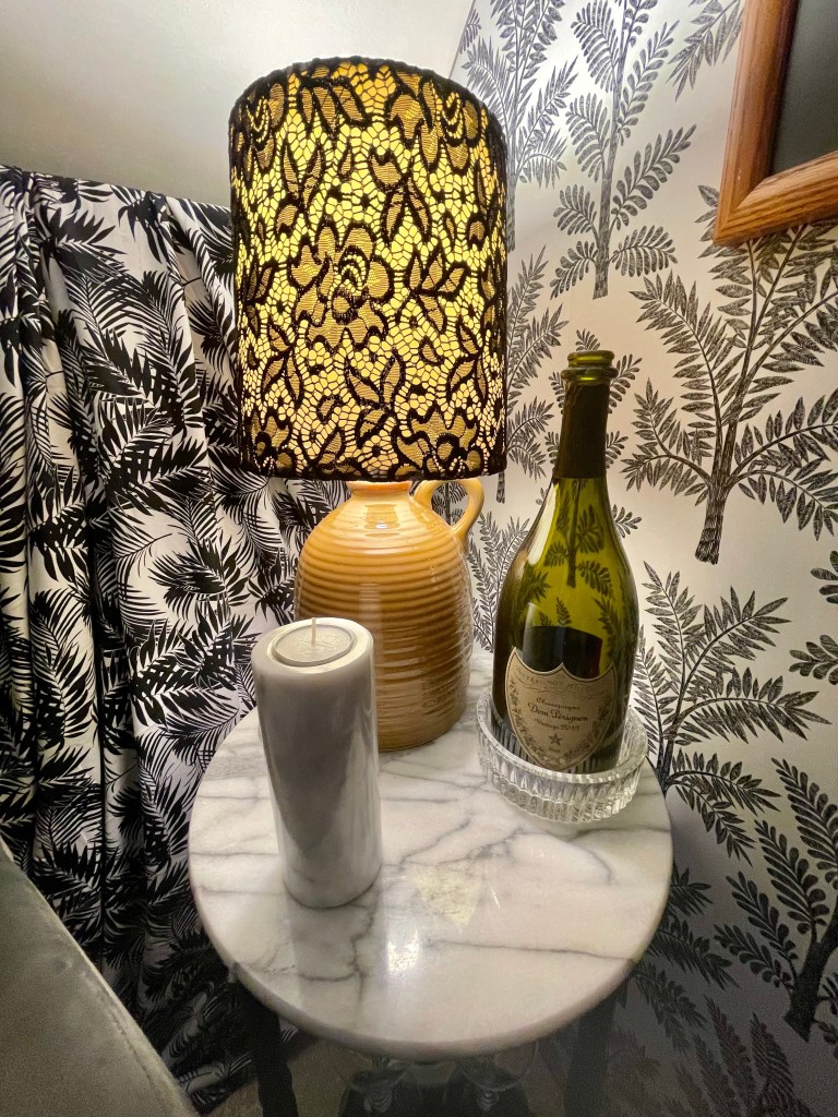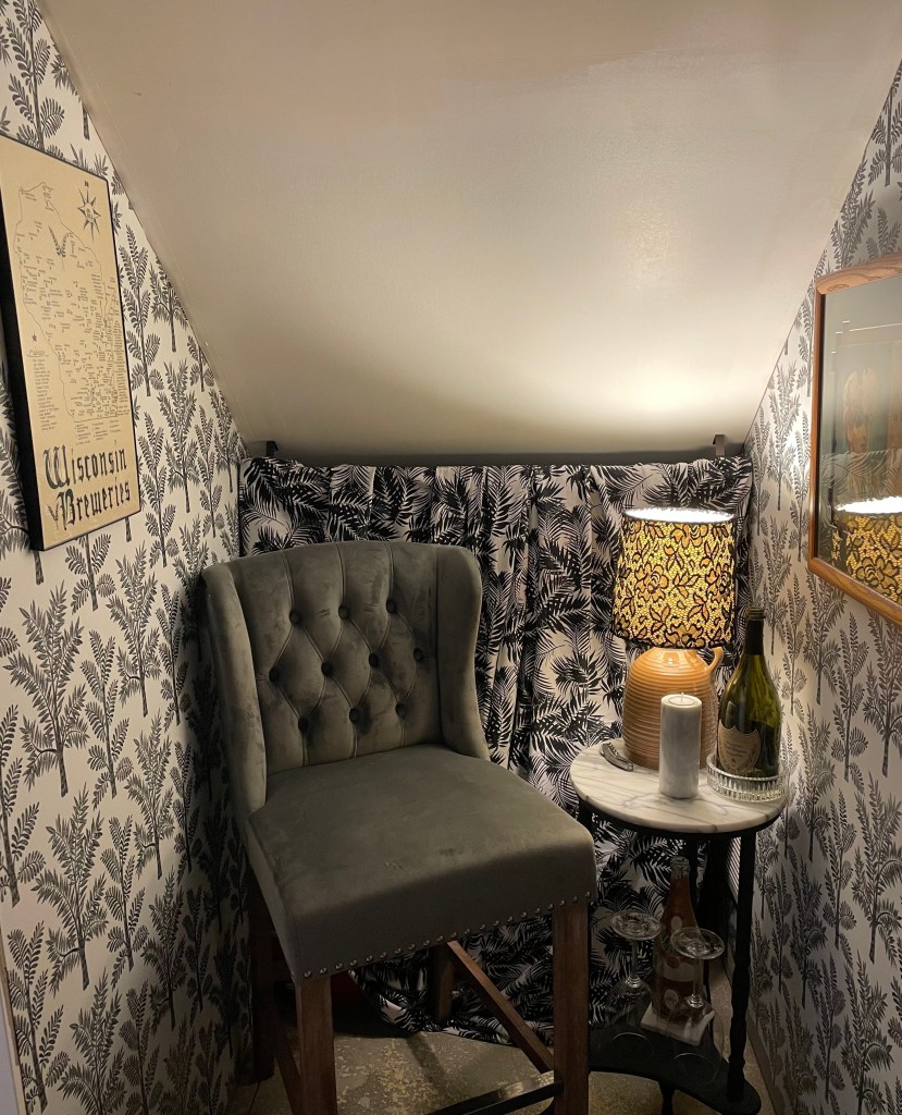 Et voila! The result is our charming little speakeasy, which is an adorable cheap-and-cheerful solution until we have a few spare dollars to upgrade to something grander.