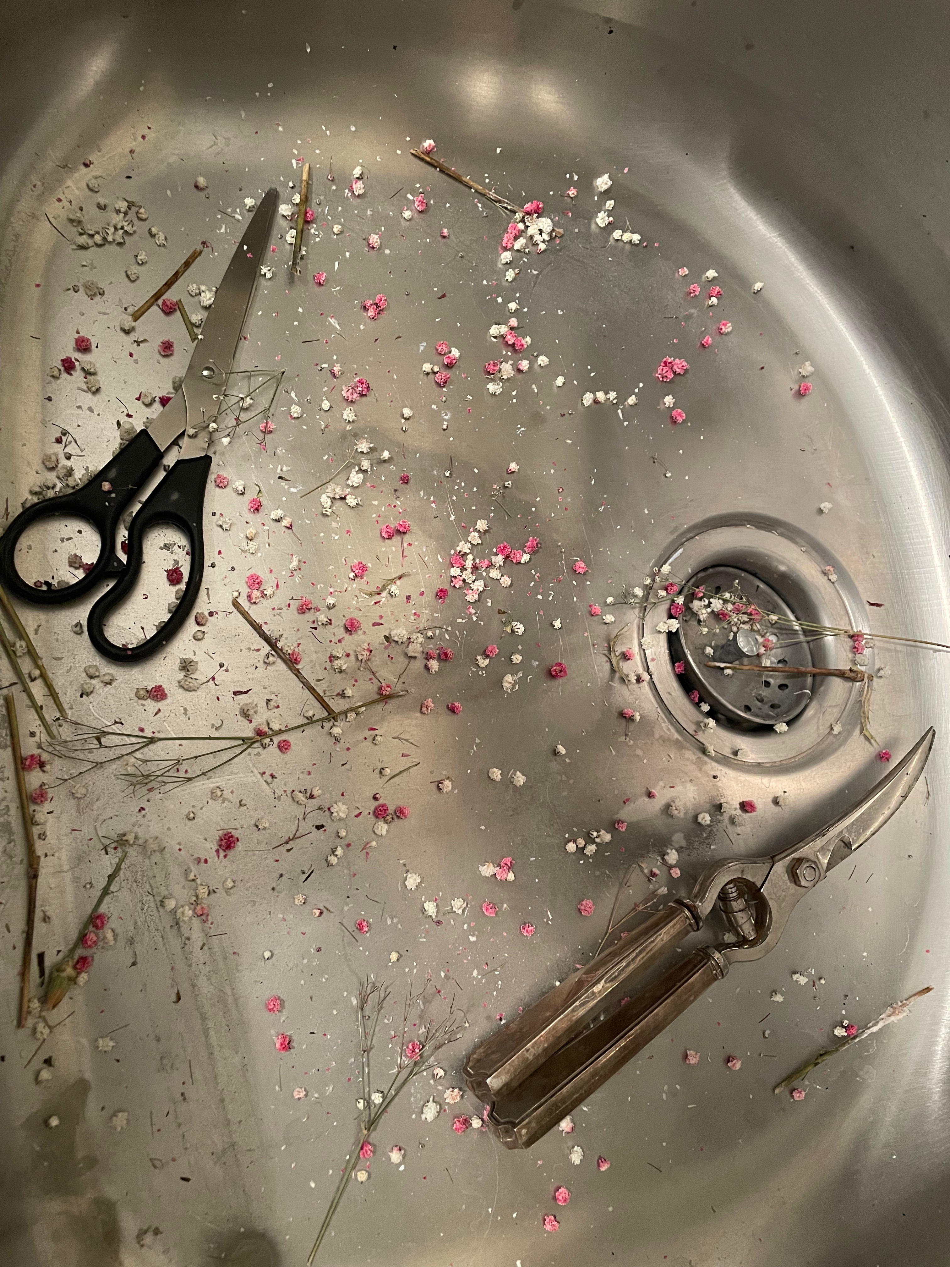 A bouquet of baby’s breath (Gypsophila paniculata), using a mug I will never drink out of as a makeshift vase!