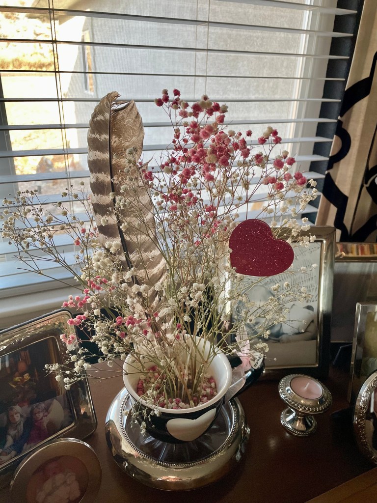 Just a quick blog today because I want to fanny around the house before Mr Maximalista comes home and starts wagging his finger at me for wasting my time putting up Valentine’s Day décor. I can hear him now, plaintively asking, “didn’t we just take down the decorations?”