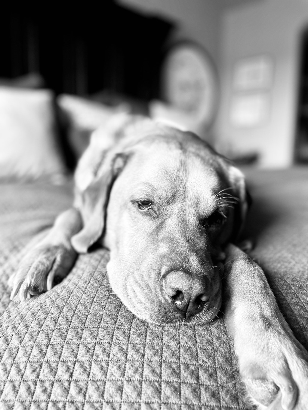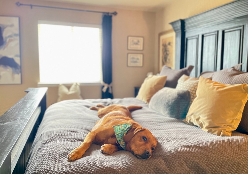 Except our brand new king size bed is barely big enough for myself and my 6’4” husband. Why on earth is that, you ask? Well, it’s because our 60lb Labrador stretches herself horizontally across the middle of the bed, leaving hardly any room for me or Mr Maximalista.