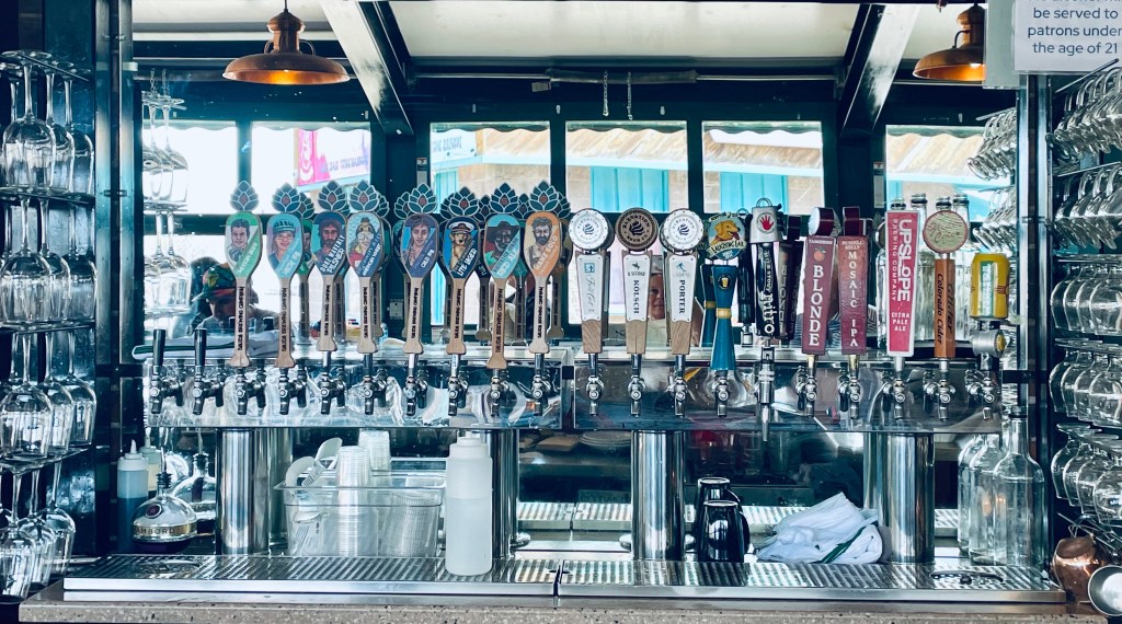 We tried some excellent local IPAs at The Boathouse, then took a short walk along the riverfront to the High Side Bar & Grille, where we dined on the patio. It was late afternoon, still light out, with lots of pedestrian traffic ambling around, which was fun to casually watch.